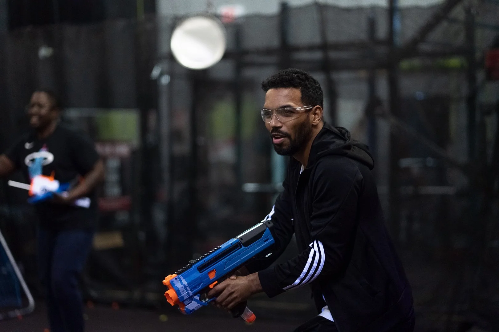 Next up! Nerf Battles. It’s fast, hilarious, and full of team dynamics that bring out everyone’s competitive side. Think indoor battlefield meets real-life video game, where the only objective is to dominate and have as much fun as possible.